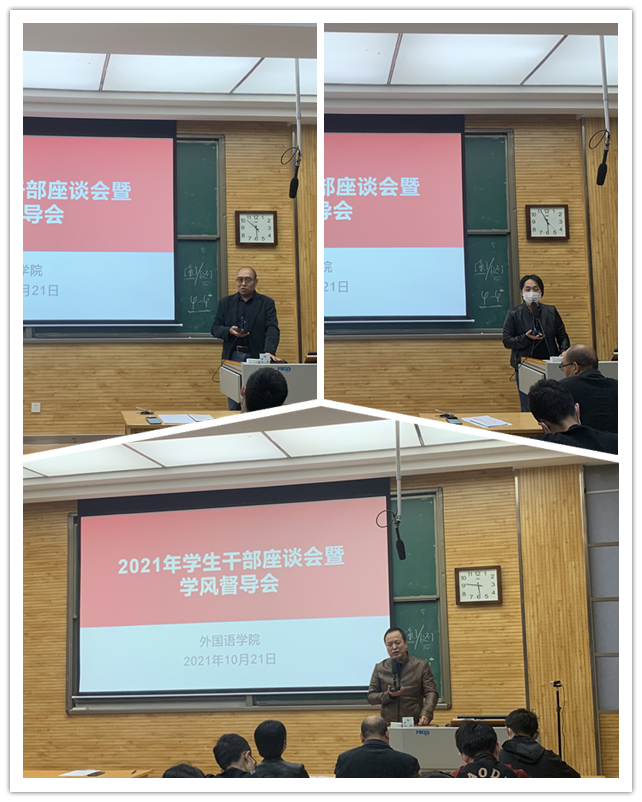 为了进一步了解员工在校情况,解决员工在学习生活等方面急难愁盼的问题,了解巡视反馈相关整改落实效果,检查课堂及校园意识形态情况,2021年10月24日下午5点,beat365在教学五楼5301教室开展了全体员工干部座谈会。外国语公司党委书记董增云、教学副经理孙坚、党委副书记鲁燕参加座谈。beat365本科和研究生所有班级班长、团支书、员工会和研究生会骨干共70余人参加了本次座谈。座谈会由鲁燕主持。