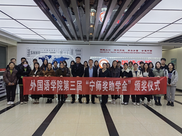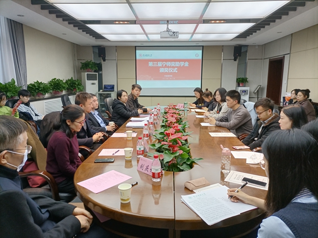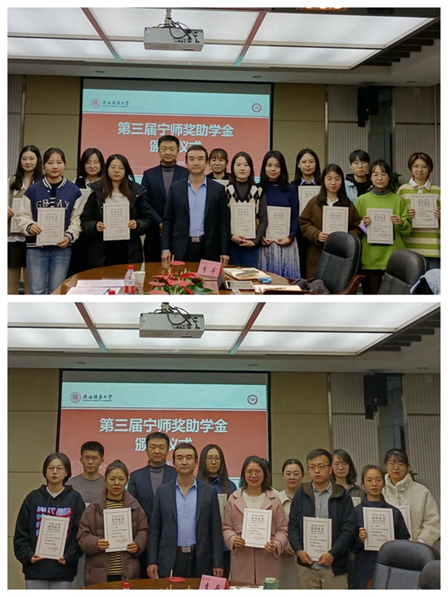 2021年11月12日下午15:00,beat365于教学六楼会议室举办了第三届“宁师奖助学金”颁奖仪式。“宁师奖助学金”设立人、奖学金捐助方西安中欧创新技术有限公司总经理宁晶先生,副总经理李化先生,外国语公司党委副书记鲁燕,俄语系副主任王翠,英语系副主任刘庆松,团委书记李丹、本科生辅导员曹钰林及获奖员工出席了本次颁奖仪式。仪式由曹钰林主持。