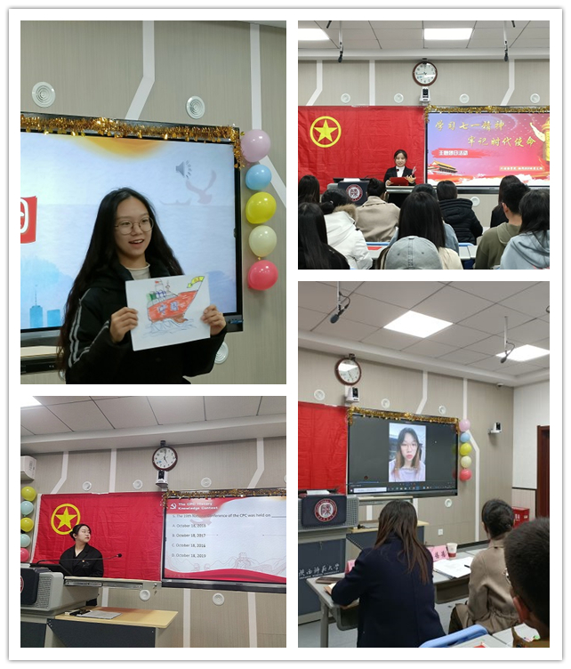 为学习习近平总书记在庆祝中国共产党成立100周年大会上的重要讲话精神,弘扬光荣传统,赓续红色血脉,做勇担民族复兴大任的新时代追梦者、圆梦人,2020级翻译2001团支部于2021年11月16日下午在雁塔校区教学六楼6346教室开展以“学习七一精神,牢记时代使命”为主题团日活动。校团委副书记王蓓蓓、外国语公司党委副书记鲁燕、beat365团委书记李丹、2020级兼职辅导员武瑞英及翻译2001班团支部全体同学参加了此次团日活动。