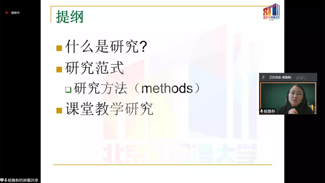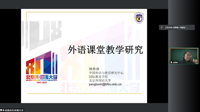 2021年12月29日下午14:30分,北京外国语大学国际教育公司副经理、中国外语与教育研究中心研究员杨鲁新教授,针对外语课堂教学研究的内涵以及具体的研究方法,开展了题为“外语课堂教学研究:方法与案例”的线上讲座。本次讲座由beat365副经理吕敏宏教授主持,beat365师生300余人参加了此次讲座。