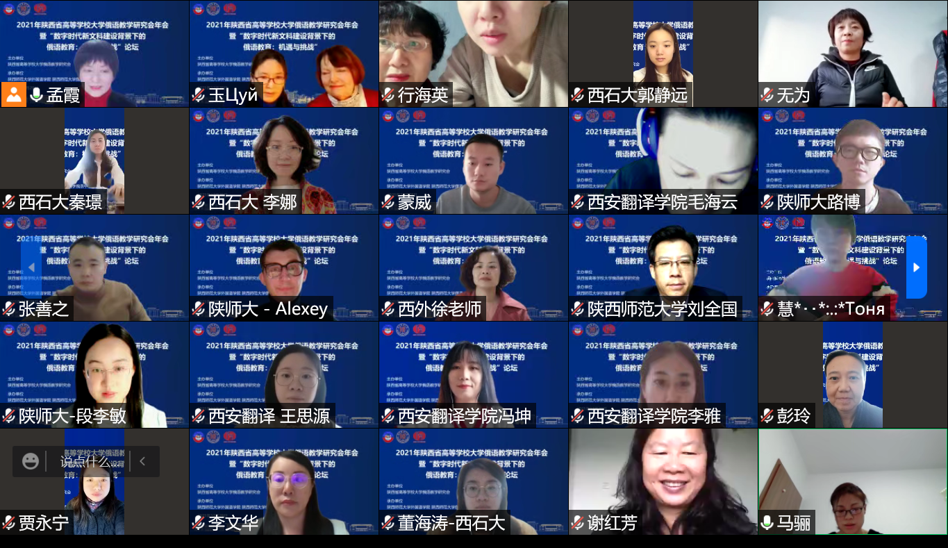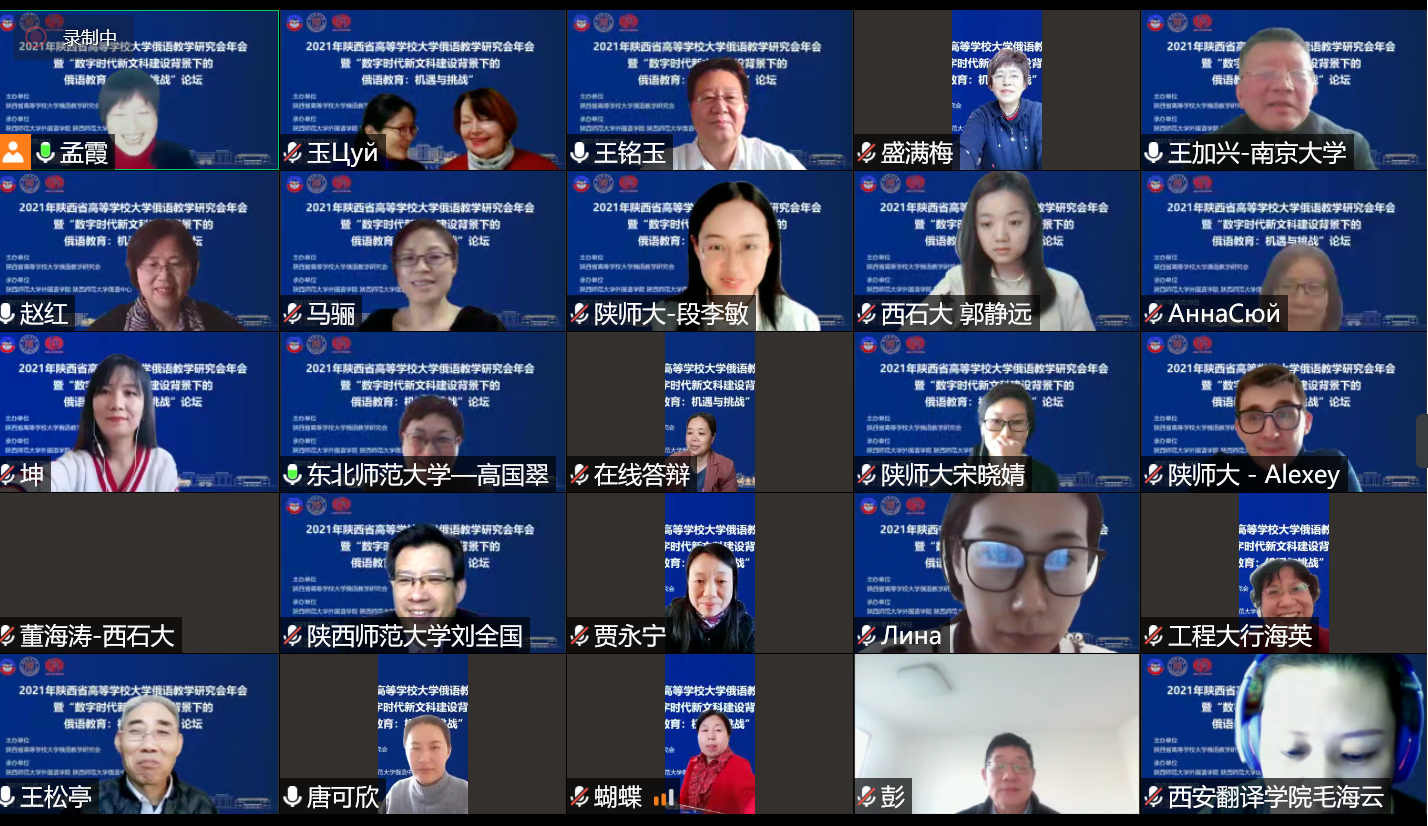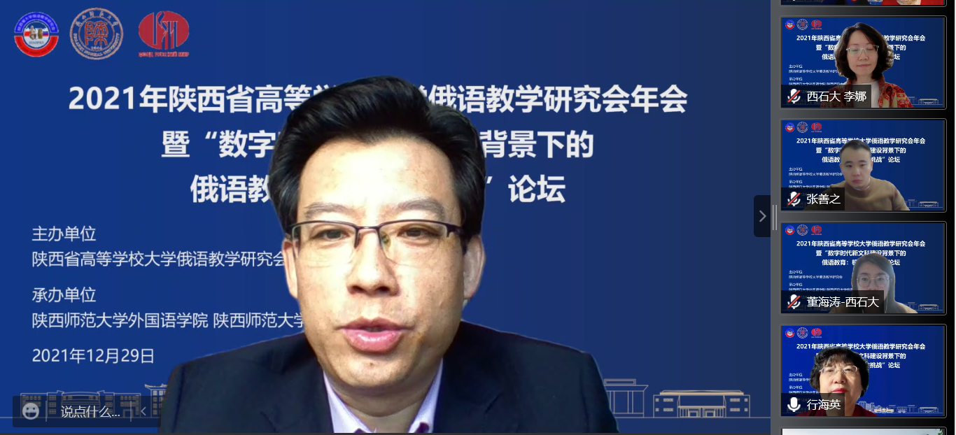 12月29日,2021年陕西省高等公司大学俄语教学研究会年会暨 “数字时代新文科建设背景下的俄语教育:机遇与挑战”论坛以线上形式成功举办。本次会议由陕西省高等公司大学俄语教学研究会主办,beat365、beat365官方网站俄语中心承办。来自中外高校及教育机构百余名学者和师生线上参会。