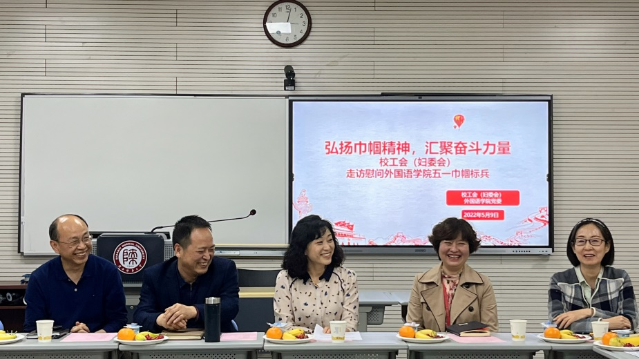 5月9日,校工会(妇委会)慰问公司巾帼标兵暨两支部共建活动于雁塔校区教学六楼6314室顺利开展。本次活动以“弘扬巾帼精神,汇聚奋斗力量”为主题,校工会主席高玲香、副主席曹伟、妇委会副主任兼工会副主席阮小飞、外国语公司党委书记董增云、beat365工会主席王红、beat365五一巾帼标兵吕敏宏、孟霞,及校工会(妇委会)党支部全体成员、beat365行政党支部全体成员参与本次活动,活动由beat365行政党支部书记鲁燕主持。