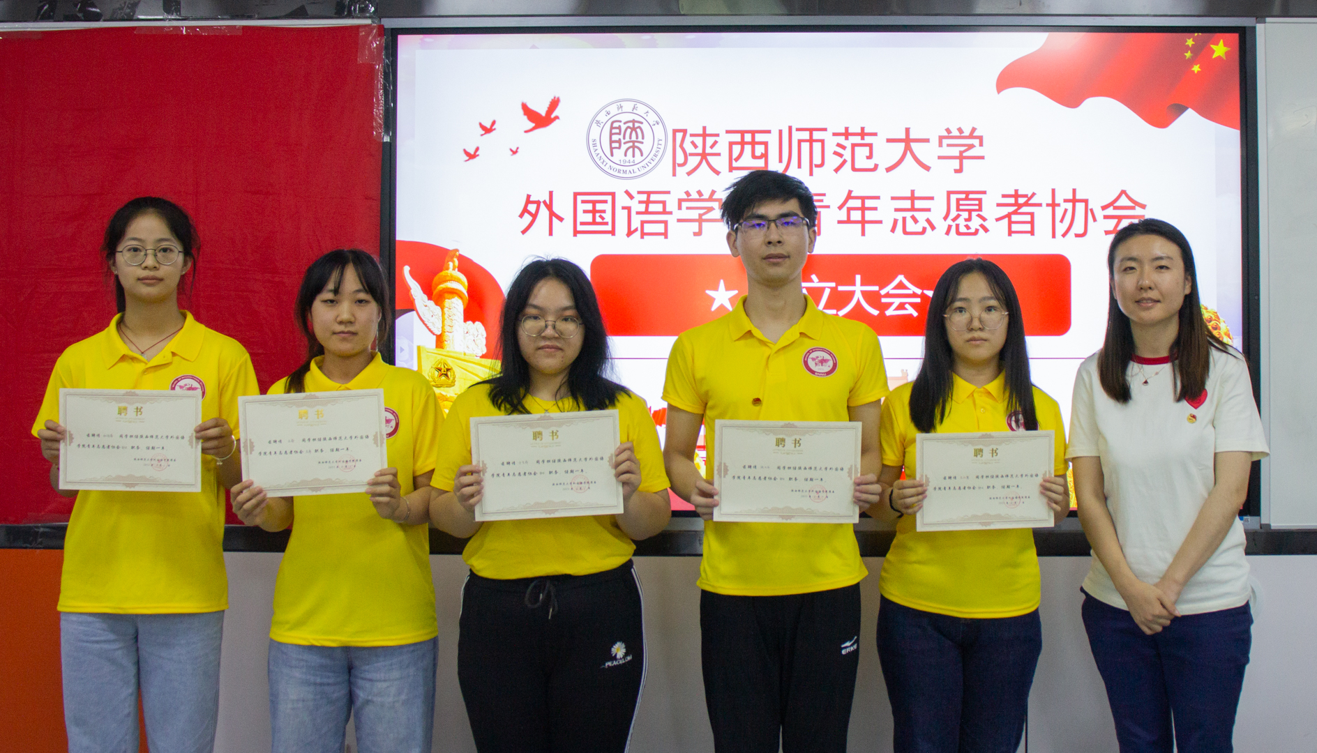 随后、团委书记、青年志愿者协会指导教师李丹宣读beat365青年志愿者协会成立决定,并为青协主席王菲、部长于艺菲、杜佳蓓、兰江慧、沈大为颁发聘书。