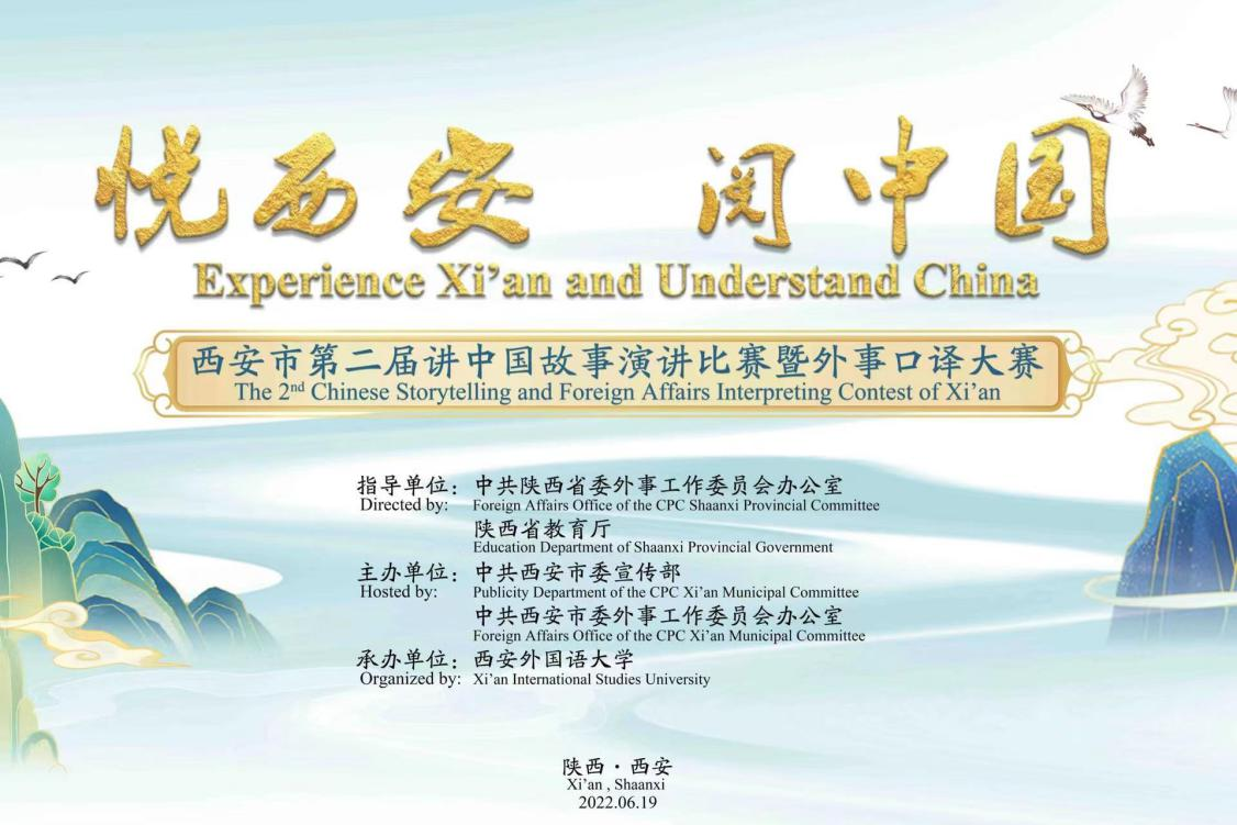 2022年6月19日,西安市第二届“悦西安 阅中国”讲中国故事演讲比赛暨外事口译大赛复赛于线上举行。由翻译系和MTI中心教师巢玥指导,公司三名同学参加比赛。2021级翻译硕士王一翔、郝雯钰分别斩获特等奖和一等奖,2018级翻译专业员工杨雪琴获优秀奖。