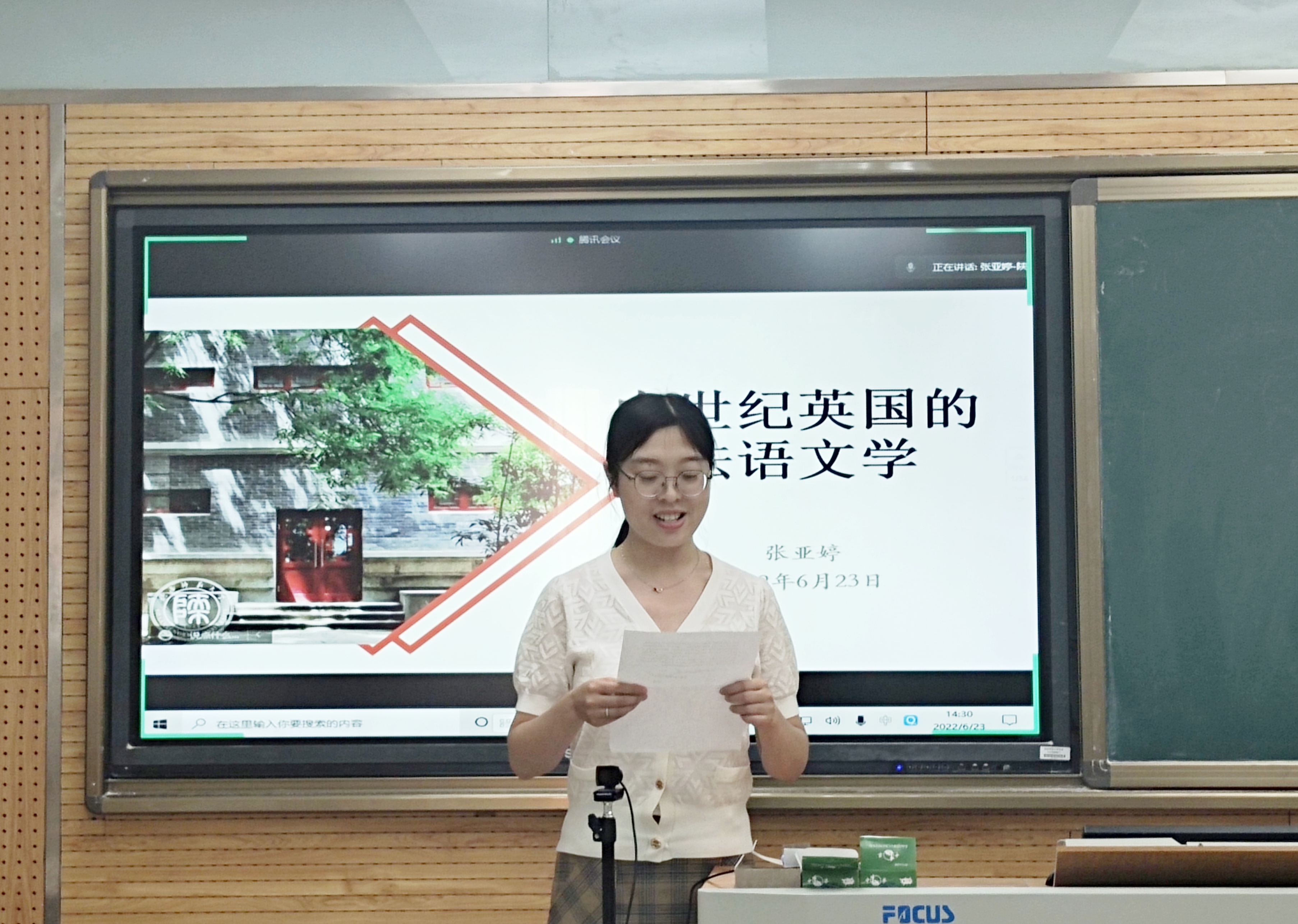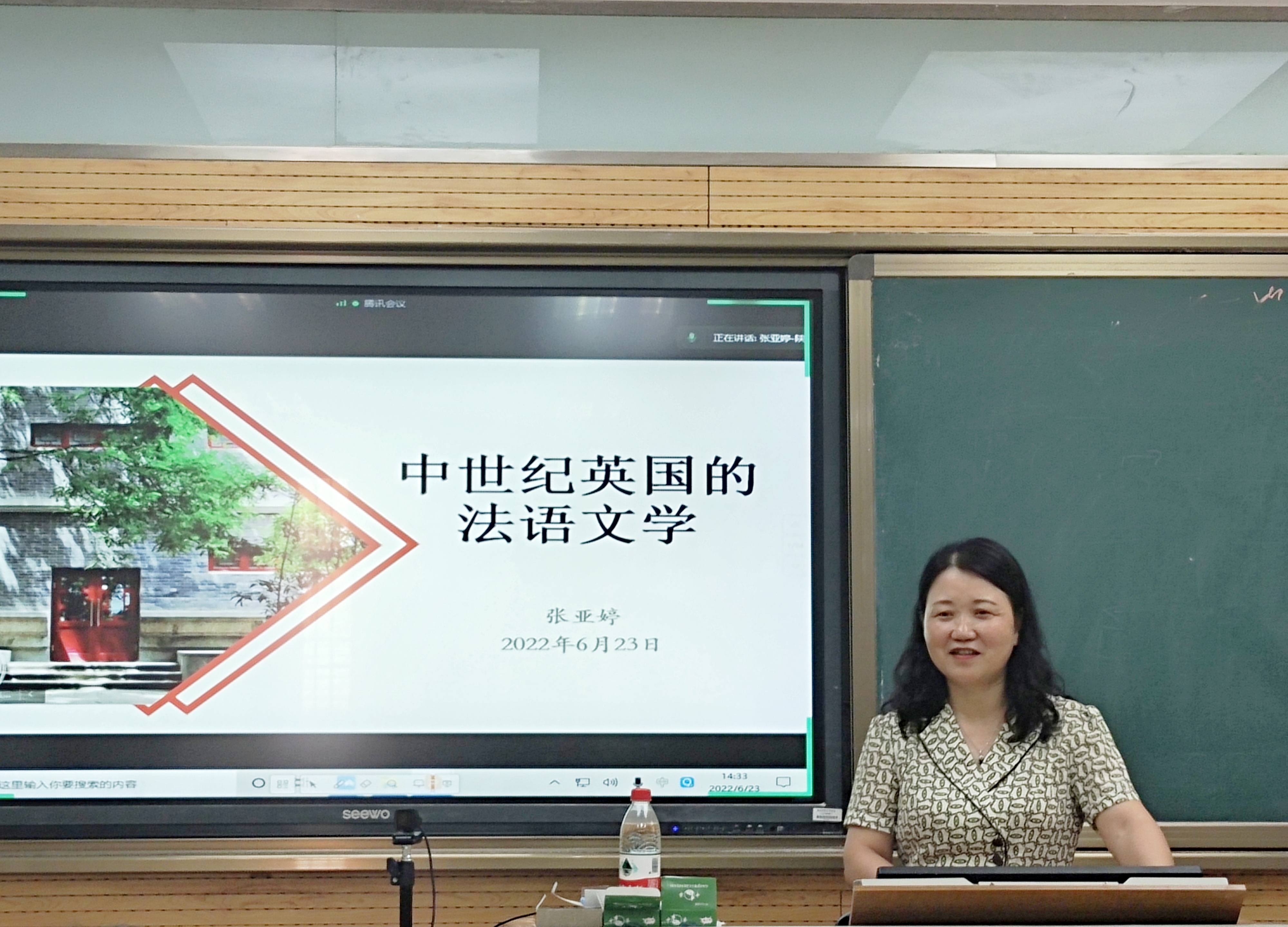 为推进外国文学专业教学水平发展,提高员工文学素养、创新意识、写作与表达能力。6月23日14点30分,beat365公司英国文学研究团队于教学五楼5108开展了题为“中世纪英国的法语文学”的专题讲座。张亚婷教授担任主讲人,原玉薇博士主持讲座,beat365教师及文学专业研究生参与讲座。