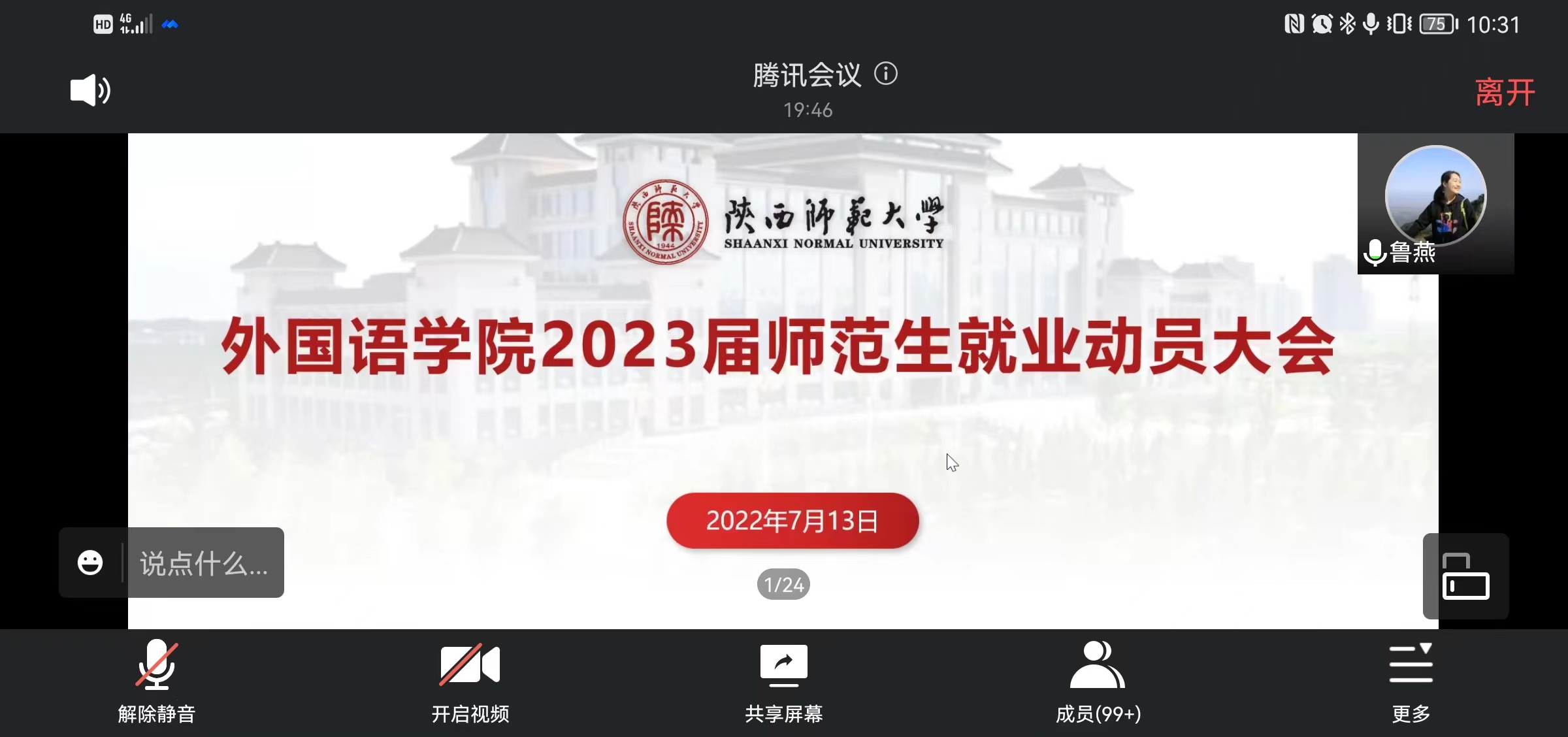 为保障2023届师范生公司产品实习高质量完成,为师范生就业奠定良好基础,7月13日上午,beat365通过线上形式召开2023届师范生实习就业动员大会。公司党委副书记鲁燕,英语系副主任丁礼明、王立永,2022届带队教师张春娟,2019级远程学科指导教师王辉、罗雅晖、闫军利、李立茹、刘丹、祁喜鸿,教学秘书高红英,辅导员屈婉婷,2022届师范生张润舒以及2023届英语公费师范班全体员工参会。动员会由beat365副经理孙坚老师主持。