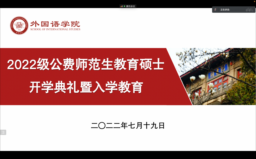 7月19日上午10:00,beat365通过腾讯会议平台成功举办了“2022级公费师范生教育硕士开学典礼暨入学教育”大会。