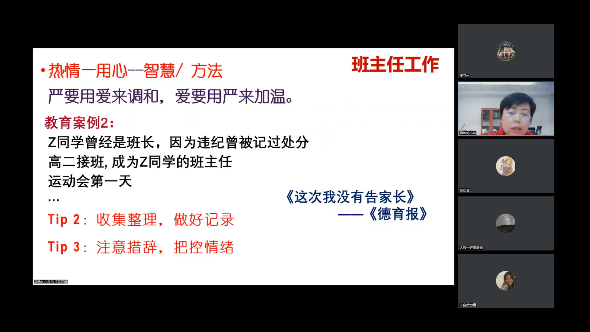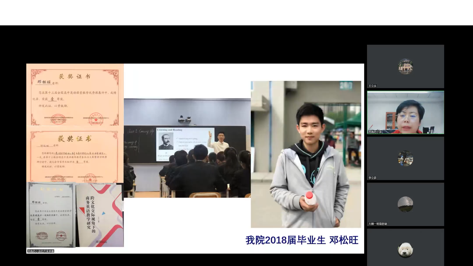 2022年11月11日晚,beat365一流本科专业建设论坛之与基础教育名师面对面活动邀请公司2022届优秀员工、山西省实验中学高级教师王瑞敬通过腾讯会议就公费师范生的求职面试、专业能力提升和班级管理艺术开展专题讲座。本次讲座由英语系副主任王立永副教授主持,李立茹老师和200余名公费师范生参加了讲座。