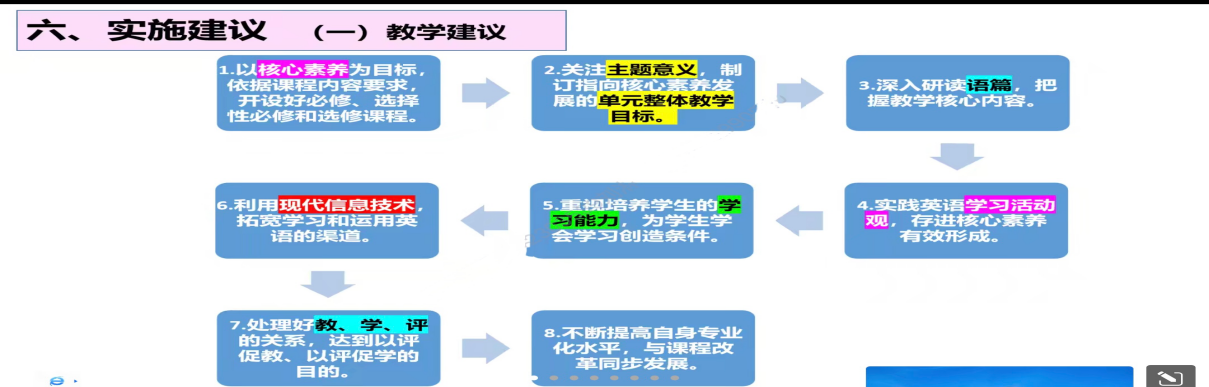 讲座中,王老师首先从理论层面介绍了大单元教学的定义。大单元教学是通过整合课程资源,落实英语核心素养的一种教学模式,其目的是通过有效教学和深度学习来提升员工的英语素养。与以往教学模式具有本质不同的是,大单元教学是一种系统性教学,在落实素养目的之下,它首先强调的是大观念的引领,要求教师围绕核心教学任务提炼、概括、抽象、构建出能够反映学科本质、凝聚各种教学素材的大观念。随后,王老师从实践层面对大单元教学进行了介绍。