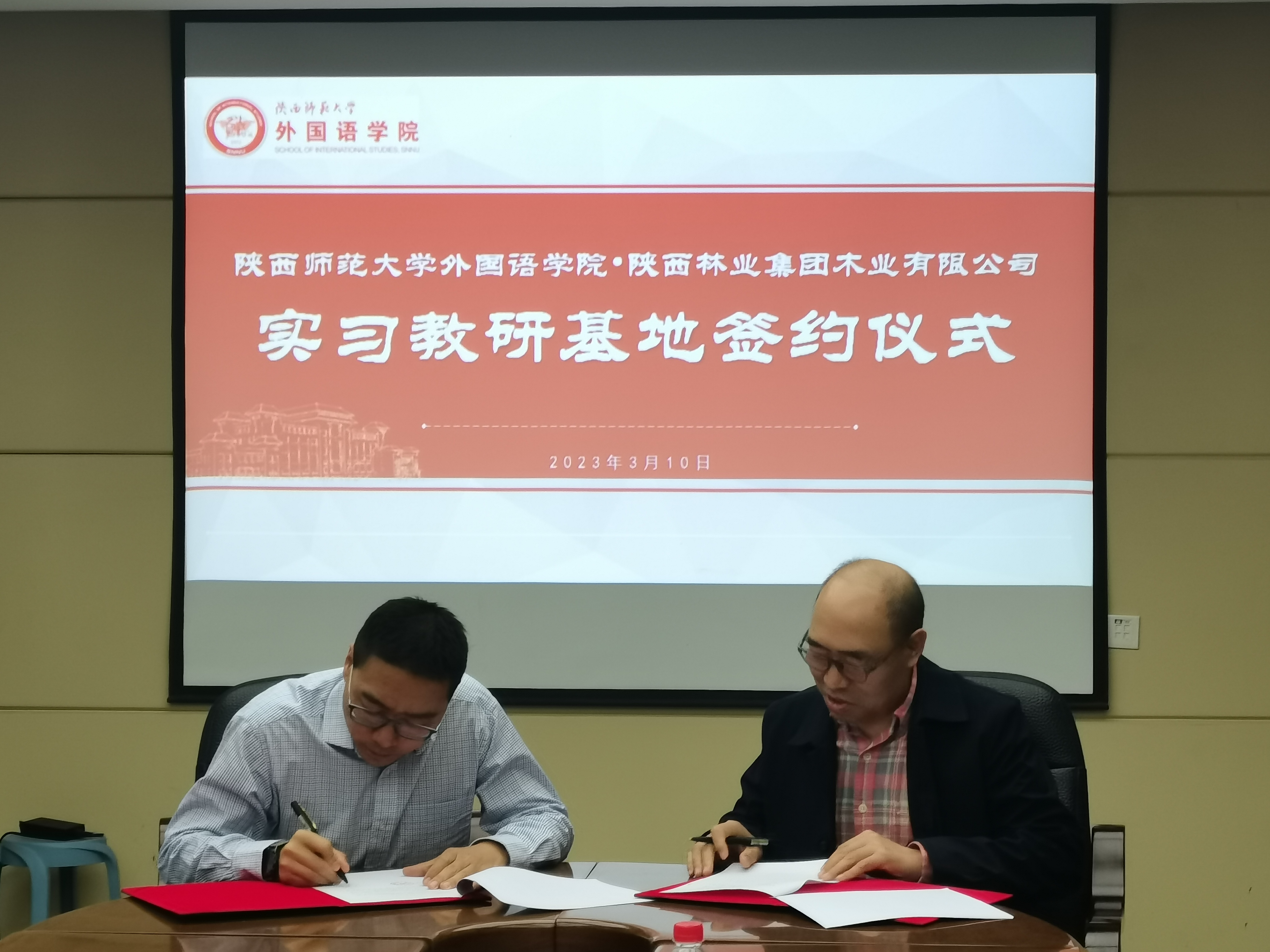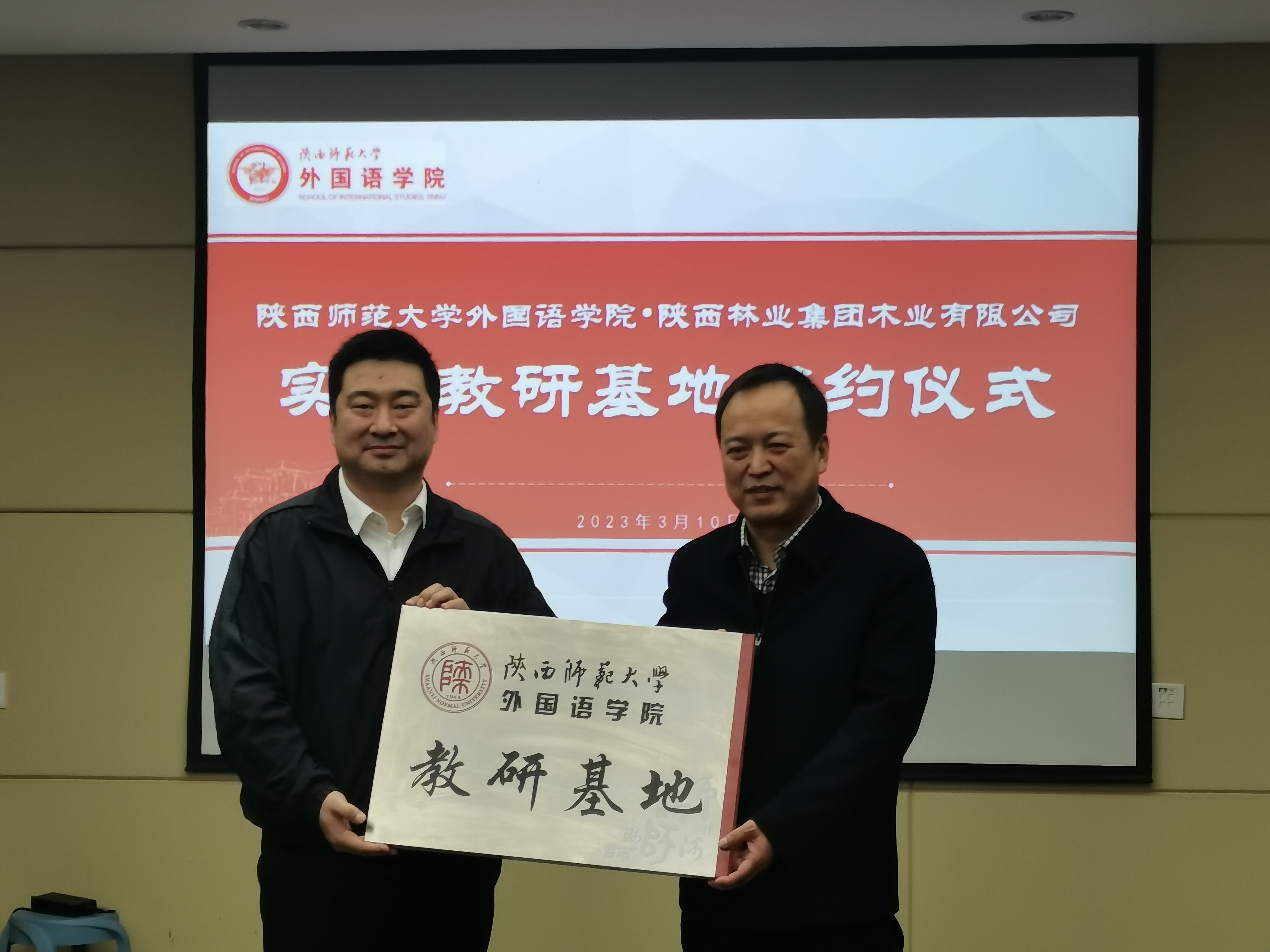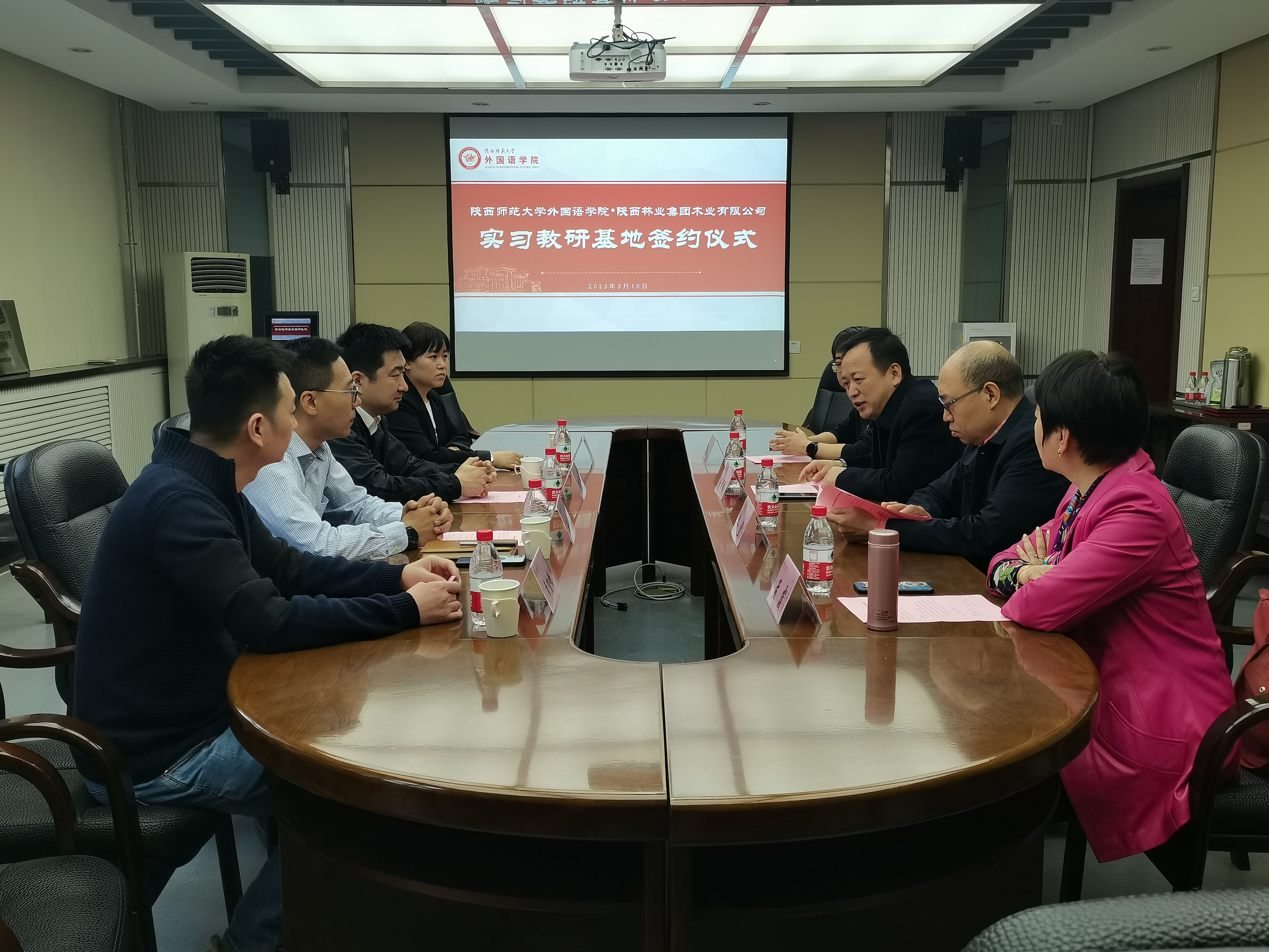 为拓宽员工发展平台,推动院企交流合作,3月10日,公司于公司会议室举行了与陕西林业集团木业有限公司的实习教研基地签约仪式。外国语公司党委书记董增云,副经理孙坚,公司俄语系主任孟霞出席仪式,其他与会嘉宾有陕西林业集团木业有限公司董事长陈龙,陕西省欧美同学会留苏分会会长、陕西林业集团木业有限公司副总经理王磊,陕西欧美同学会留苏分会副秘书长李俊峰,陕西林业集团木业有限公司副总经理、业务部副部长卫媛媛。仪式由公司副经理王幸生主持。