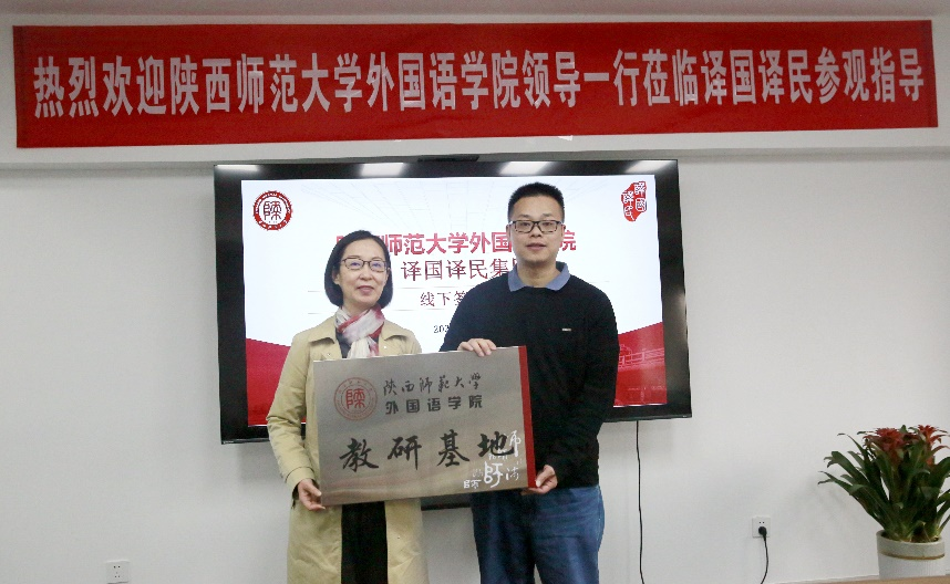 座谈会后,译国译民集团西安分公司吴强与beat365副经理吕敏宏共同完成了教研基地的授牌仪式。