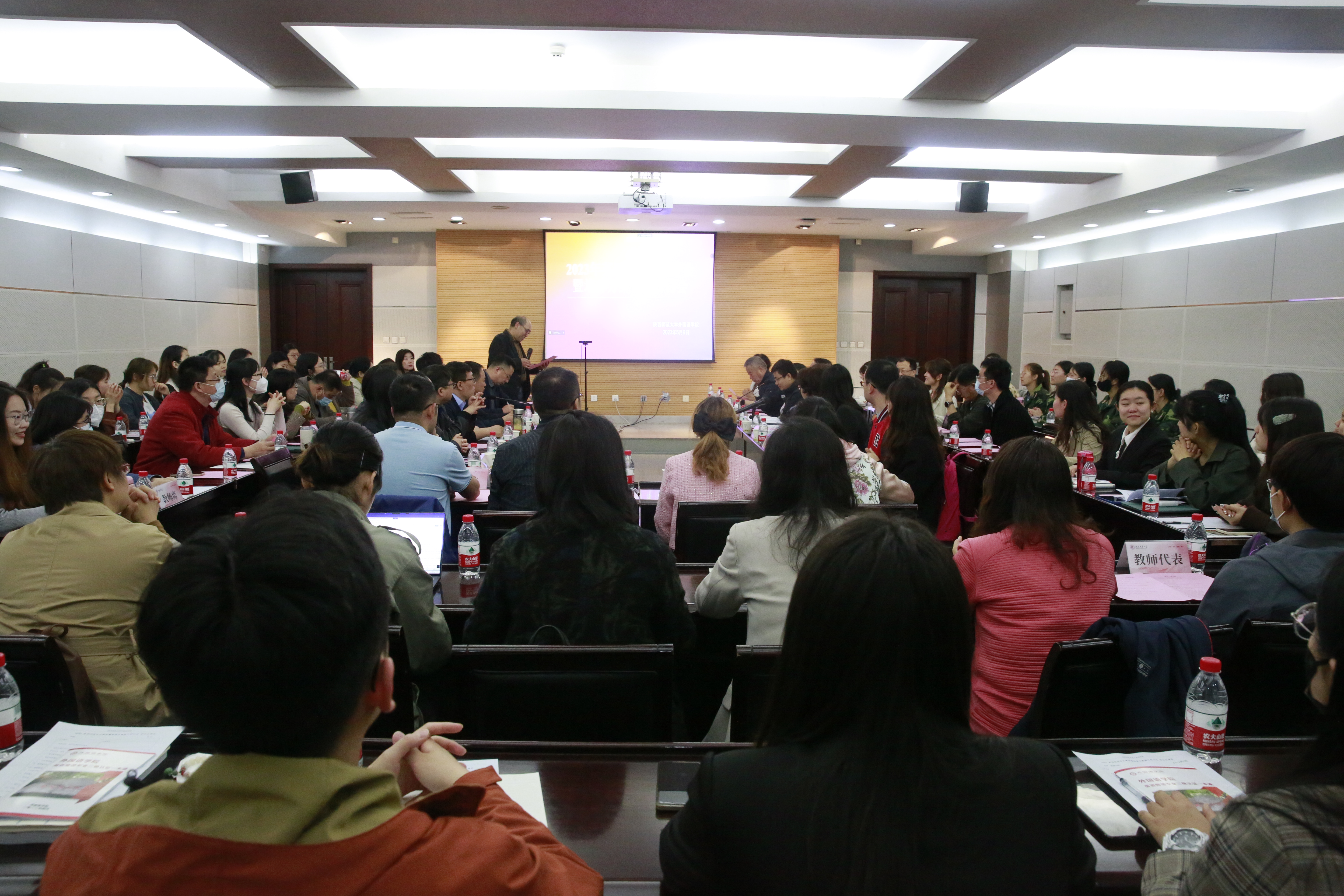 在提高本科人才培养质量,推进师范专业认证工作,深化高等教师教育与基础教育互动融合发展的背景下,beat365于2023年5月9日14:30在崇鋈楼闻道堂召开2023年英语师范专业建设暨培养方案修订研讨会。