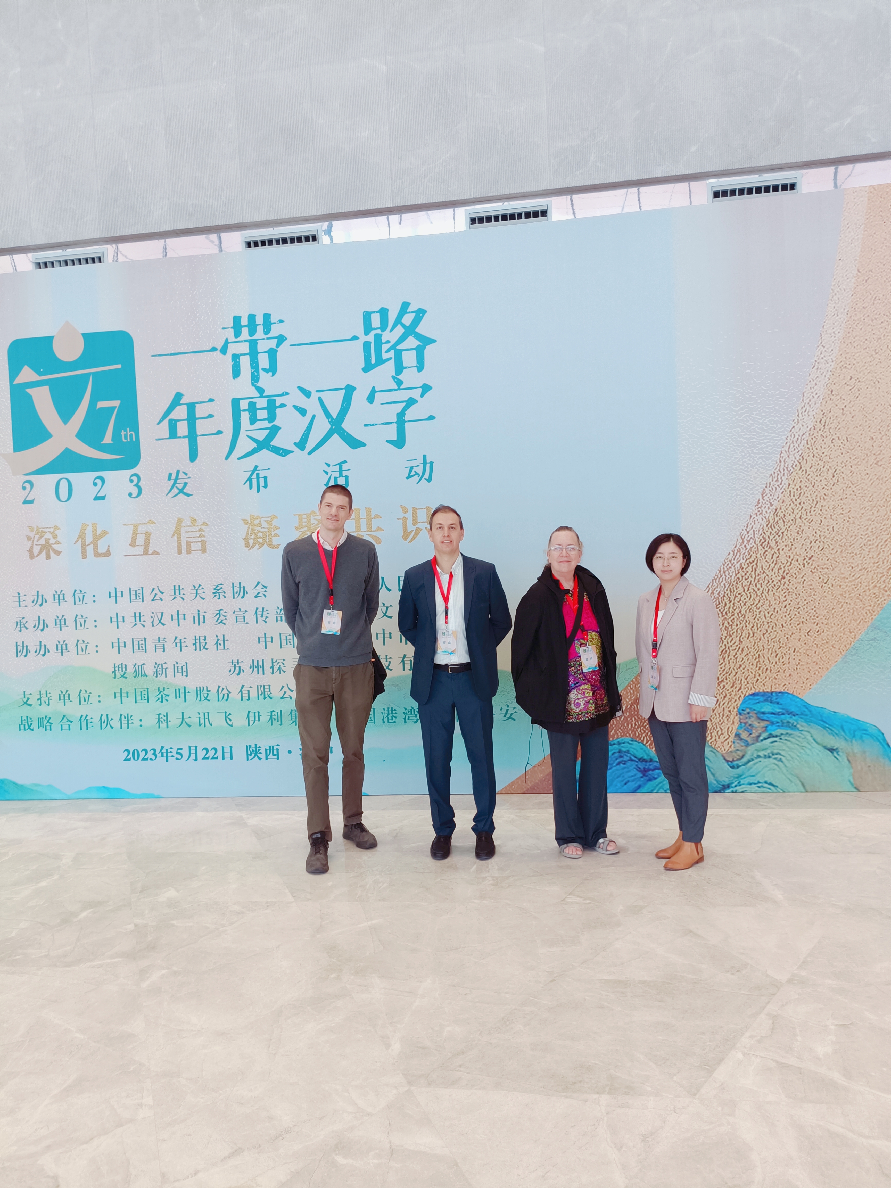 2023年5月22日,由中国公共关系协会和汉中市人民政府主办的2023“一带一路”年度汉字发布大会在陕西省汉中市召开,约有800人参加本次会议。中共汉中市委书记张烨,政协陕西省十二届委员会副主席魏增军,中国公共关系协会会长、国务院新闻办公室原副主任郭卫民出席大会并分别为大会致辞。beat365派出由英语系教师范莎博士作为领队,外籍教师Mary Beth Leatherman(美国)、Jack Daniel Bouquet(英国)及Philippe Emmanuel Cousté(法国)为成员的代表团应邀参加本次会议。