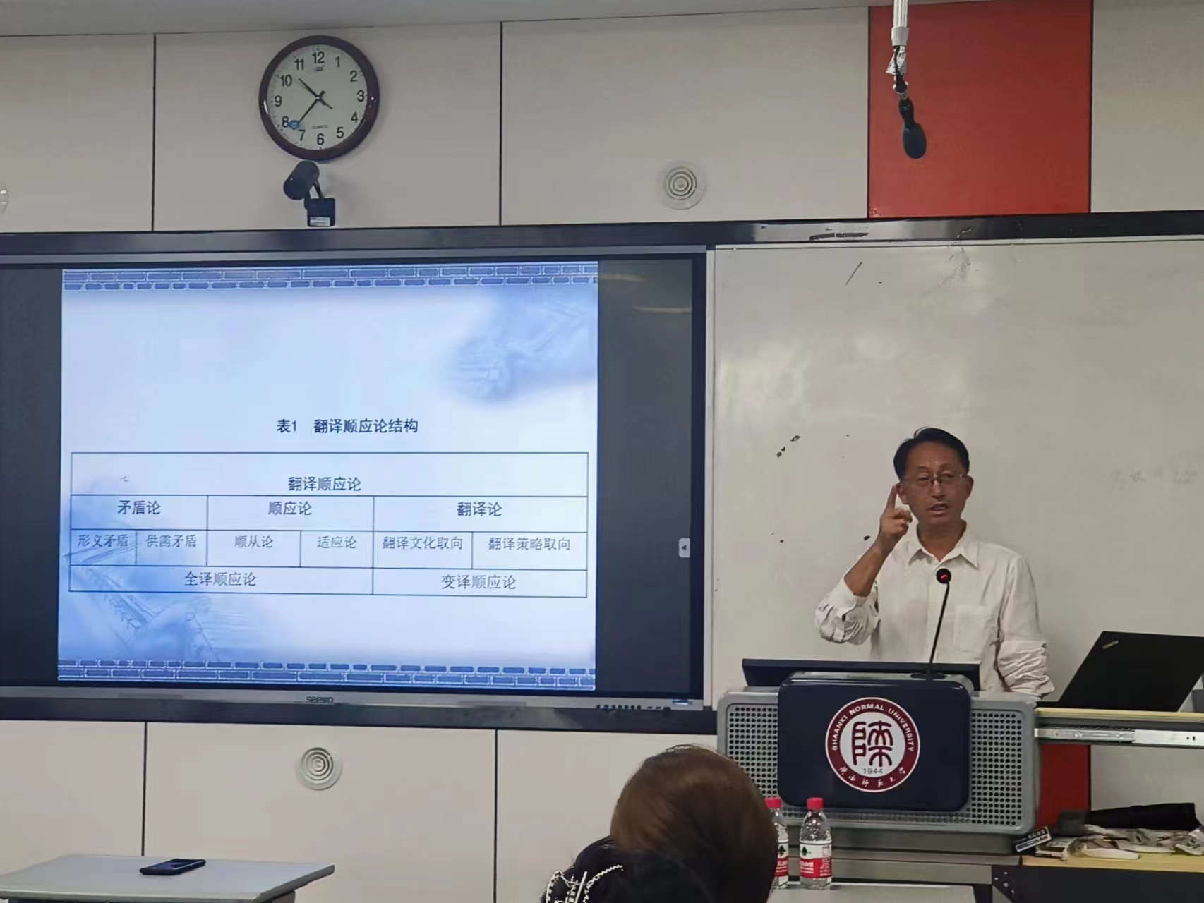 在答疑环节,黄忠廉教授针对在座师生的提问作出了细致的解答,beat365师生们全神贯注,受益匪浅。最后,刘全国经理对黄忠廉教授带来的学术盛宴表示衷心感谢,并作总结性发言,他表示,黄忠廉教授展现了自身高超的整合和建构能力,将语用学顺应论与翻译结合,填补了策略上的空白,既有对宏大问题的讨论,也提出了顶级设计和现实路径。