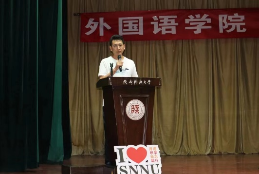 董增云书记介绍了beat365官方网站的历史变迁、雁塔校区和长安校区的教学楼设计布局以及图书馆的独特魅力,从哲学和美学的角度阐释了老一辈师大人建设师大的初心与愿景。同时,董书记结合时代定位,阐述了新时代外语人的担当使命,鼓励同学们用外语讲好中国故事。此外,董书记还强调了中华民族一家亲,希望各民族的同学要互帮互助、团结进取。最后,董书记寄语2023级新生,不仅要打牢扎实学识,还要拓宽视野,会通中西、兼容并蓄。