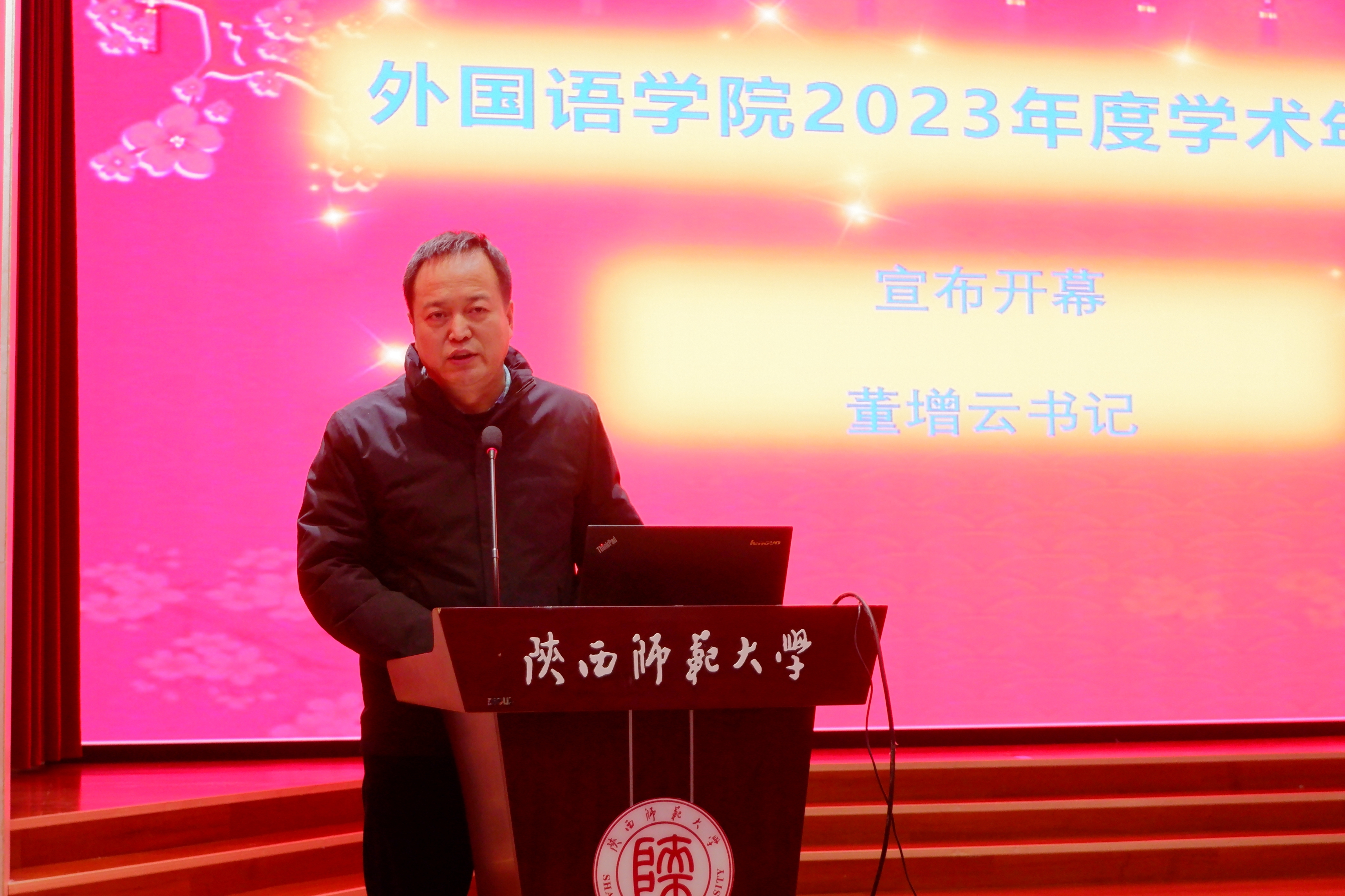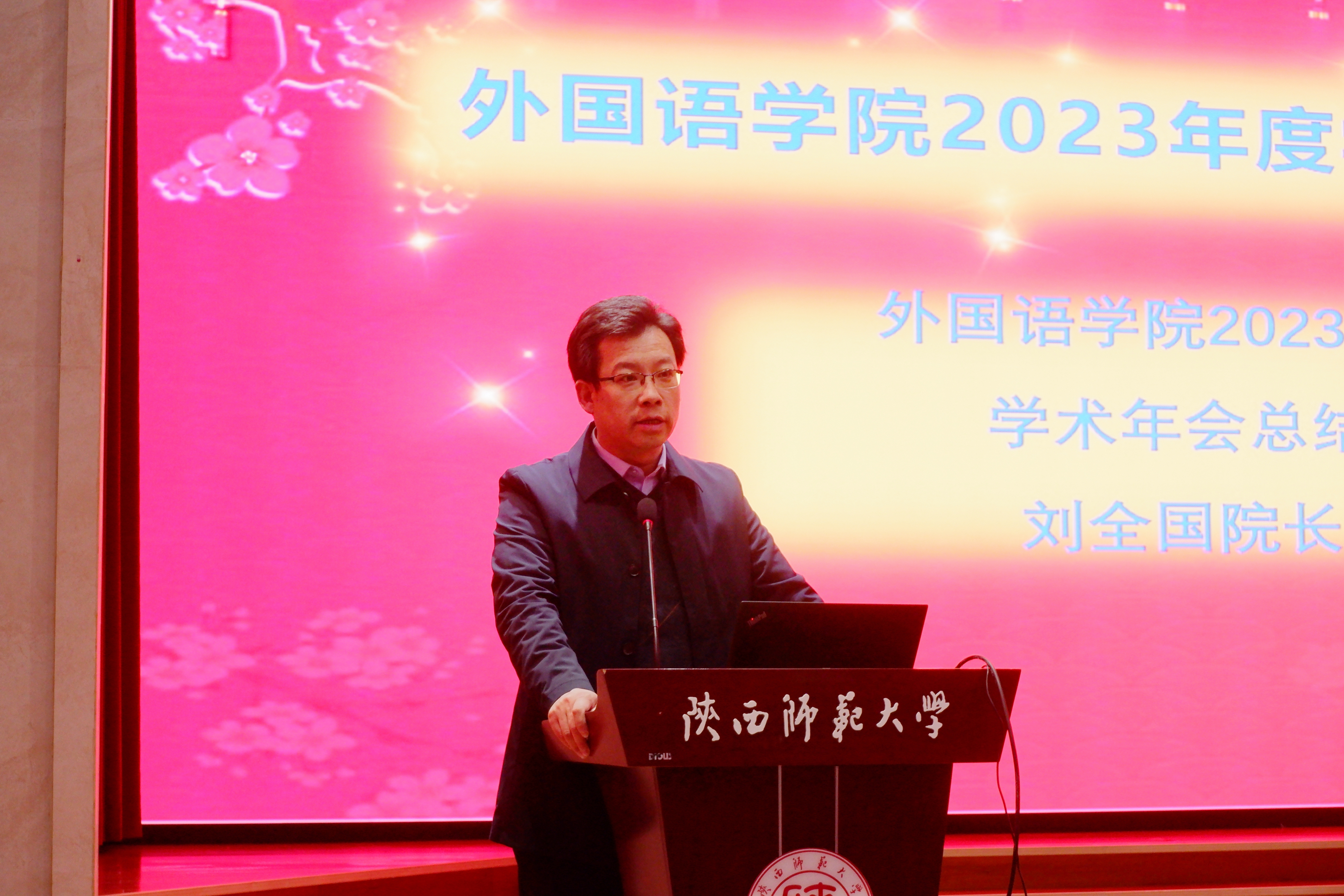 为总结2023年工作,展望翌年工作新愿景,12月28日下午14:30,2023年度学术年会于雁塔校区逸夫楼二层报告厅顺利召开。年会由外国语公司党委书记董增云主持,beat365经理刘全国教授,副经理吕敏宏教授、副经理曹婷教授、副经理王幸生、党委副书记鲁燕及beat365全体教职员工参加会议。