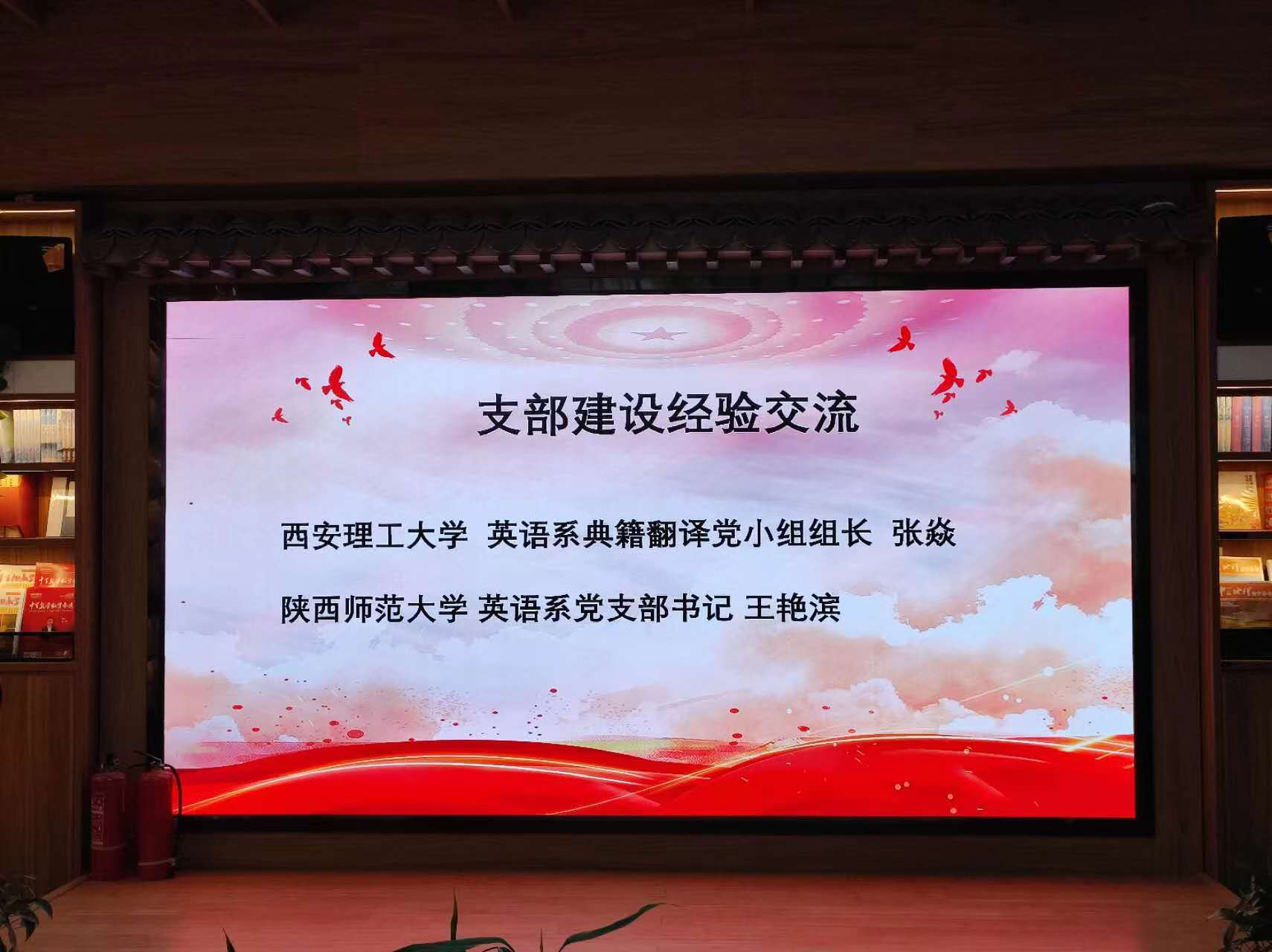 随后,西安理工大学英语系典籍翻译党小组组长张焱副教授以及公司英语系党支部书记王艳滨副教授,分别就各自支部建设情况进行分享。张焱副教授从支部双融双促的党建工作出发,分享了党建引领科研、教学、团队建设、人才培养、就业和创业等多方面内容;王艳滨副教授从支部工作理念、支部特色党日活动、政治理论规范学习记录、支部党员科研项目成效等方面进行了分享。通过分享,两支部都对彼此有了更深的了解,同时也体现出党建与业务工作相结合,与学术研究相融合的重要意义。