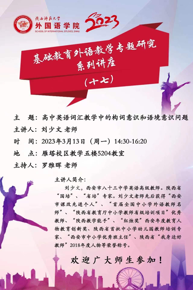 基础教育外语教学专题研究系列讲座(十七) 预告