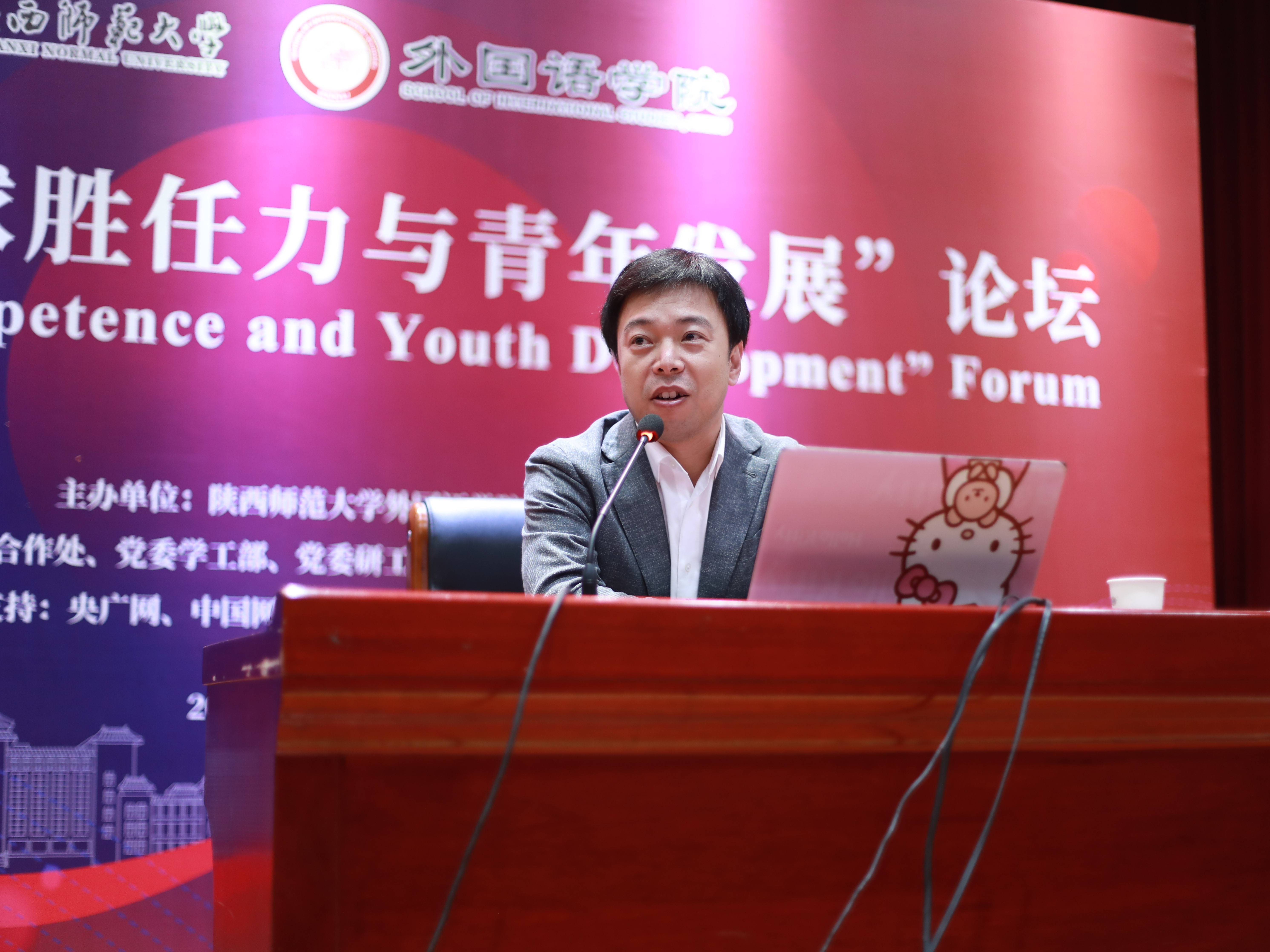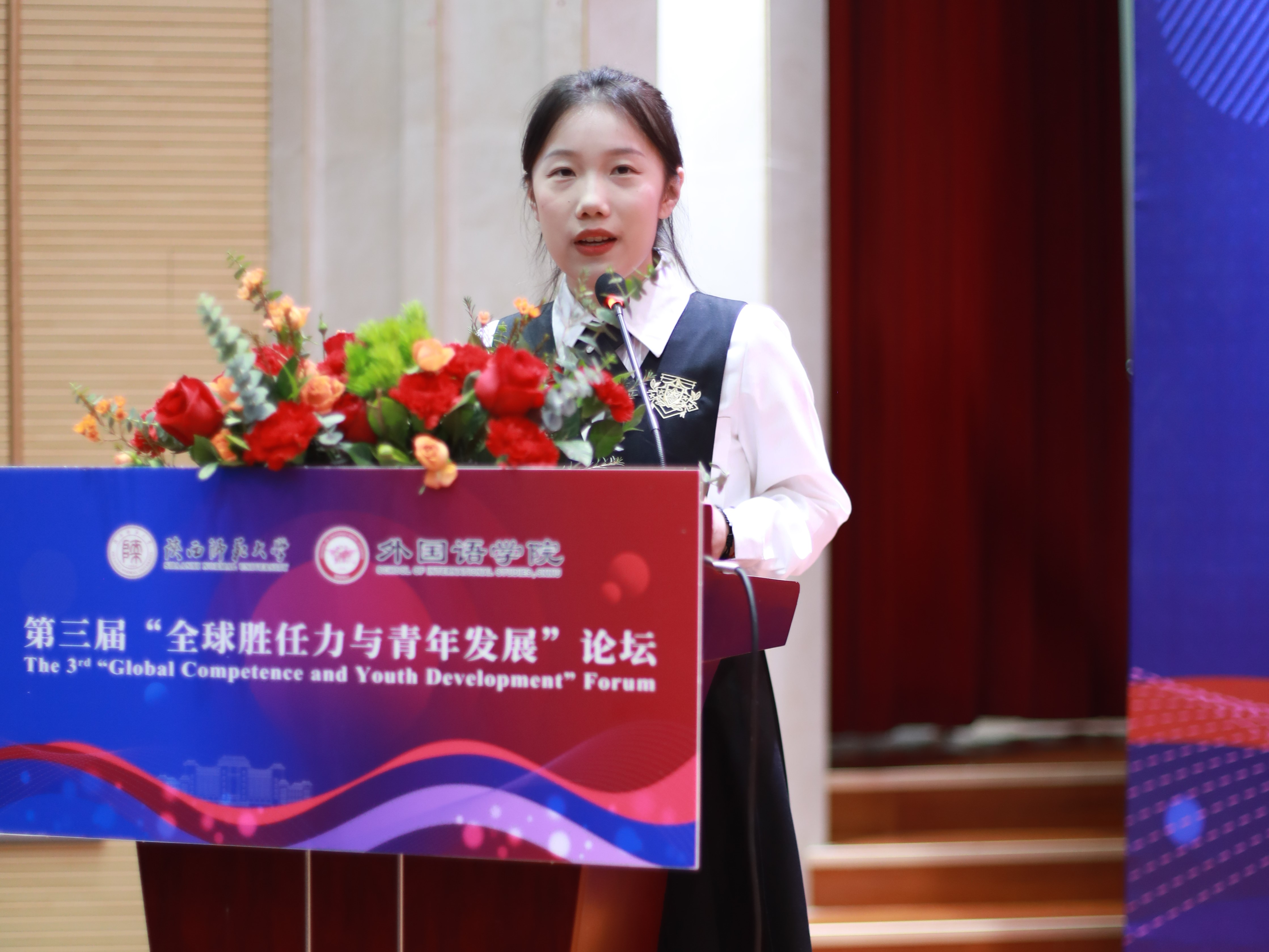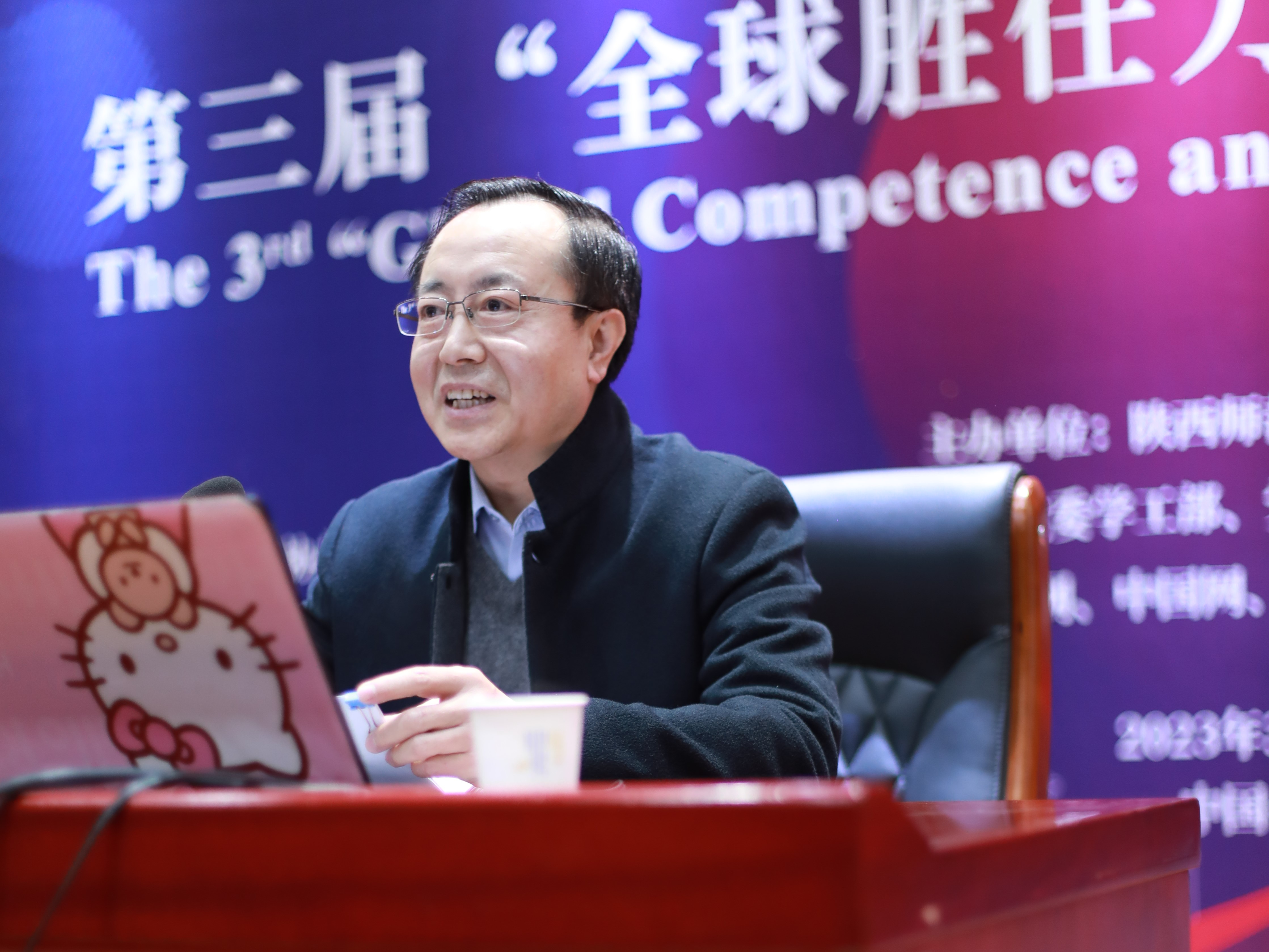 主旨报告阶段,来自不同专业领域的三名专家分别作了主题分享。西安外国语大学副董事长赵国华以“坚定‘四个自信’,助力民族复兴”为题,结合自身在英国大使馆以及丰富的外交和教育外事工作经历,从政治、经济、社会、政府治理与民生、国际关系五个方面介绍了中国之治与西方文化的对比,并对外语青年学子提出了希冀,鼓励大家要树立正确三观,坚定理想信念,把爱国之情、强国之志、报国之行融入民族振兴的伟业中。beat365官方网站教育学部教授刘骥以“教育的时代特征与时间张力:全球胜任力的视角”为题,通过剖析当代国际组织对“全球胜任力”的认识和探索,提出“教育如何应对新挑战”已经成为不可回避的时代之问,他强调教育的时代性发展源于教育的时间性智慧积累。秦创原(国际)路演中心董事长张国宁以“全球胜任力与青年韧性”为主题,通过国际社会中一系列生动的事例,说明了AI技术大跃迁背景下韧性培养与青年发展之间的关系,指出韧性是成功之源,生存之本,鼓励当代青年要善于穿透“迷雾”,奔赴繁星。