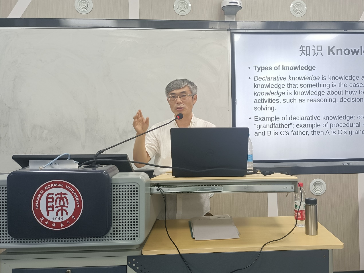 首先,贺教授以有关文本特征及其作者归属判断的问题引发了全场思考,在众多文本中,依据哪些特征对其作者归属进行判断这一问题引出了本次交流活动的主题——利用知识挖掘进行语言研究。贺教授说,在大数据时代,作为语言研究者,理应懂得利用知识挖掘技术服务于自己的语言学研究。对于讲座开始提出的问题,他和团队利用知识挖掘技术,以理性的方法为解答问题提供了视角。