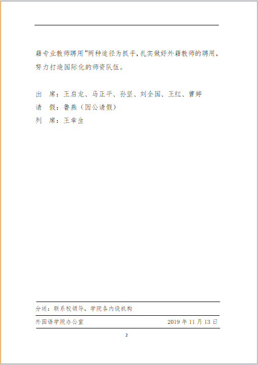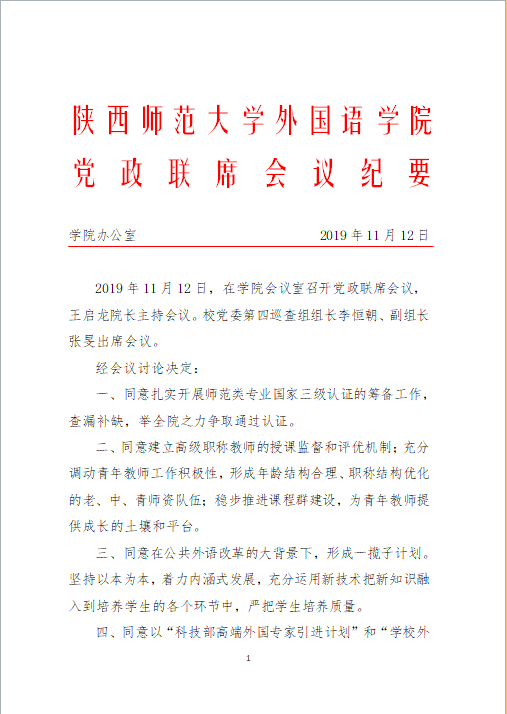 外国语公司党政联席会议纪要(2019年11月12日)