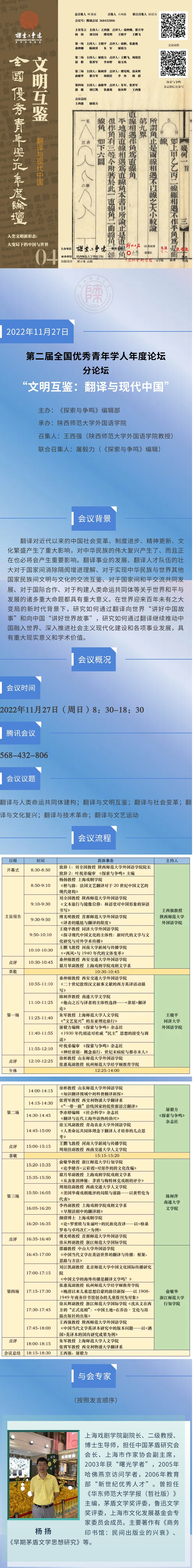 第二届全国优秀青年学人年度论坛分论坛 “文明互鉴:翻译与现代中国”会议预告